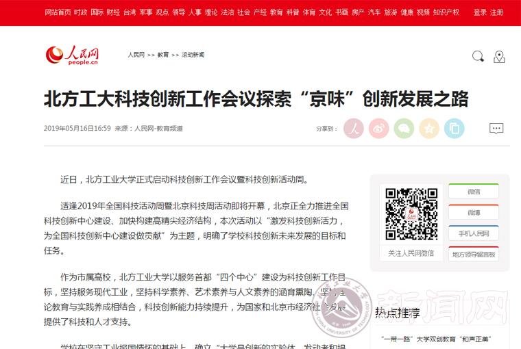 5月14日,世界杯官网科技创新工作会议隆重开幕。会议以“激发科技创新活力,为全国科技创新中心建设做贡献”为主题,服务全国科技创新中心建设和高精尖经济结构的构建,对于全面落实学校第八次党员代表大会“科技高地构筑工程”任务,进一步开拓学校科技工作新局面具有重要意义。5月16日,人民网对会议进行了关注报道。