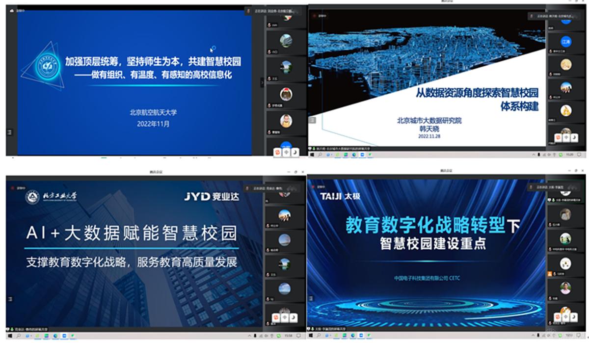 与会专家分别从《加强顶层统筹,坚持师生为本,共建智慧校园》《从数据资源角度探索智慧校园体系构建》《AI+大数据赋能智慧校园》《教育数字化战略转型下智慧校园建设重点》等多个维度对世界杯智慧校园建设的总体规划、基础设施、数据底座、核心技术、典型应用等关键问题进行了深入研讨。