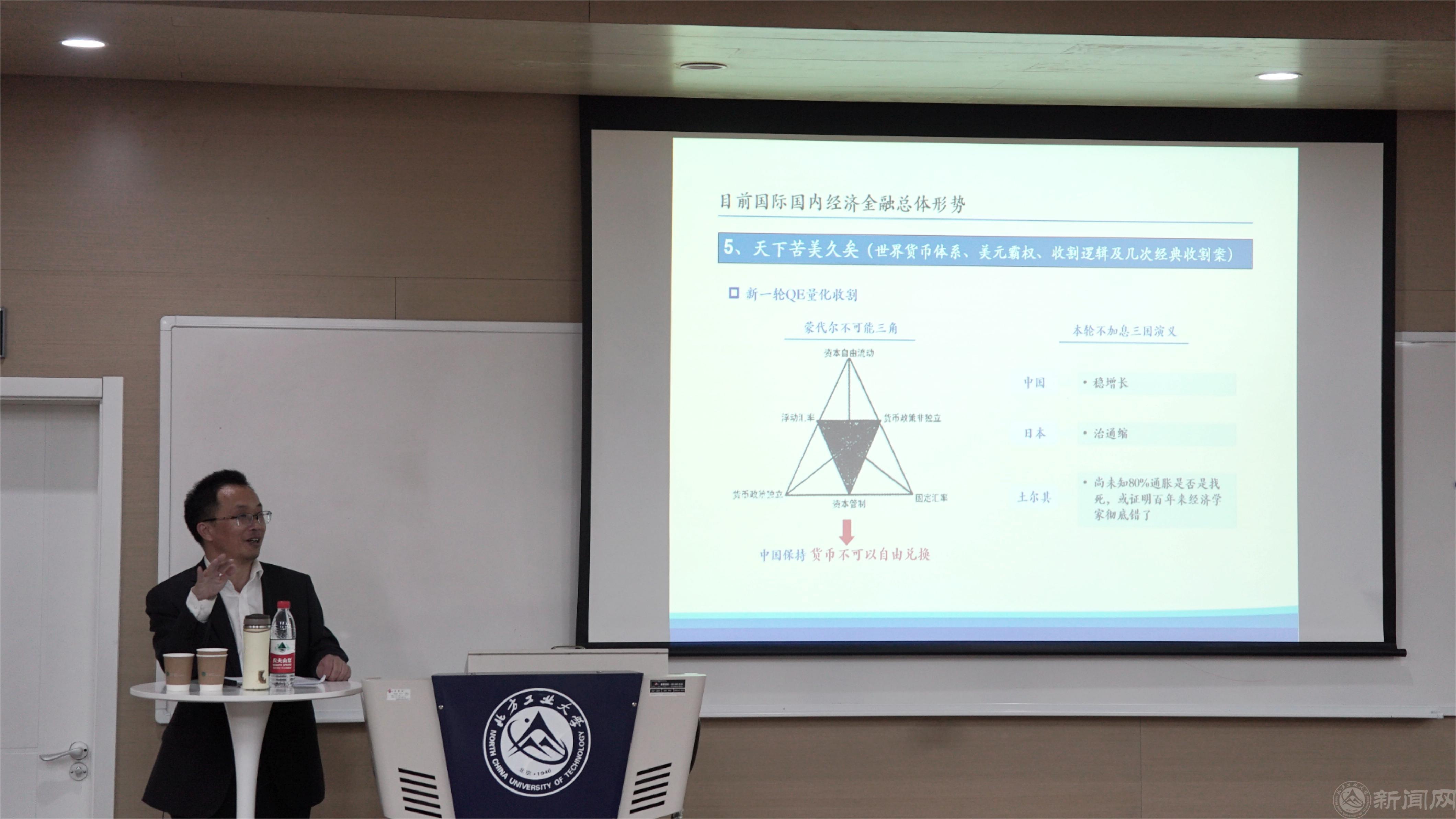 欧明青以“国际国内资本市场形势及资本运作估值逻辑及实务”为主题,从近年来国内外经济金融整体形势出发,并结合实际,为在座师生们做了一堂生动的报告。欧明青以世界金融经济格局与发展形势为背景,详细讲解了全球经济发展历程和全球工业与制造业的发展现状。欧明青还介绍了我国目前的经济结构,通过对我国经济社会的分析,为国家经济发展提出了自己的观点和看法。