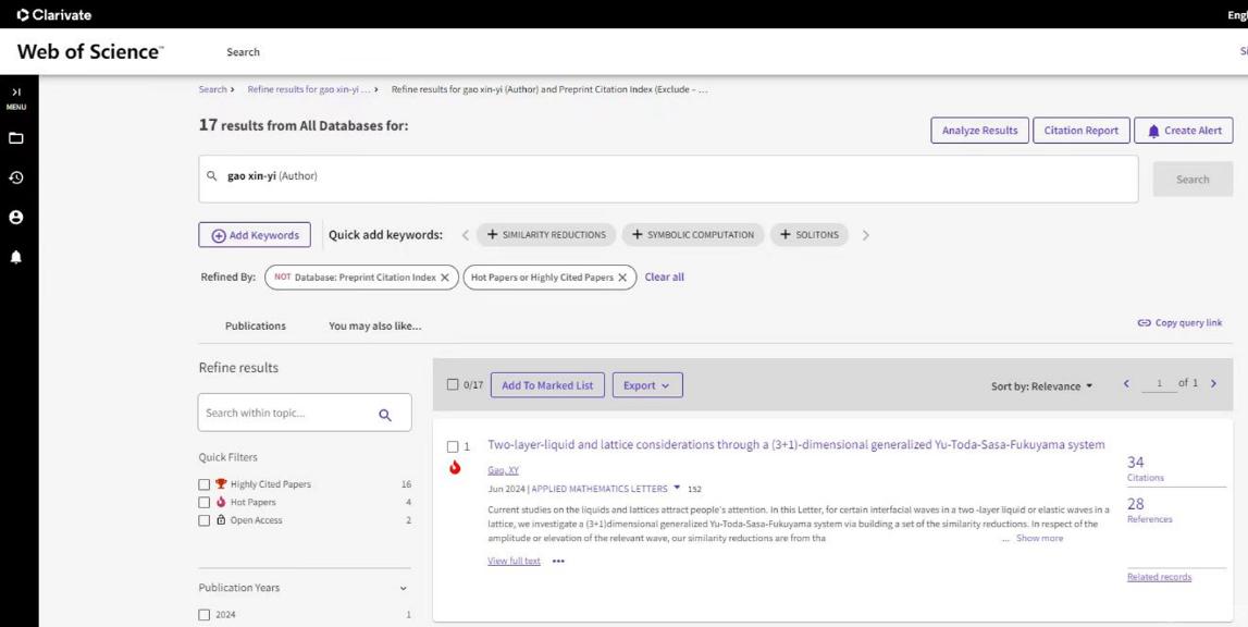 近日,世界杯理学院教师高心怡在Applied Mathematics Letters(应用数学快报)发表的标题为Two-layer-liquid and lattice considerations through a (3+1)-dimensional generalized Yu-Toda-Sasa-Fukuyama system[通过(3+1)维广义Yu-Toda-Sasa-Fukuyama系统考察双层液体和晶格]的文章入选“ESI热点论文”。