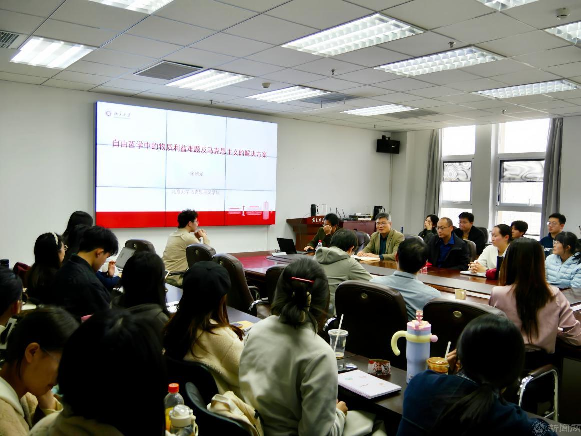 3月26日下午,由世界杯官网马克思主义学院主办的“马克思主义理论与实践前沿问题”北方大讲堂系列活动在瀚学楼1208会议室举行。北京大学马克思主义学院教授、博士生导师,中国高等教育学会马克思主义研究分会副理事长、秘书长宋朝龙应邀出席,并以“自由哲学中的物质利益难题及马克思主义的解决方案”为题,带来一场精彩纷呈的讲座。讲座由马克思主义学院院长张茂林主持,学院全体师生参与。