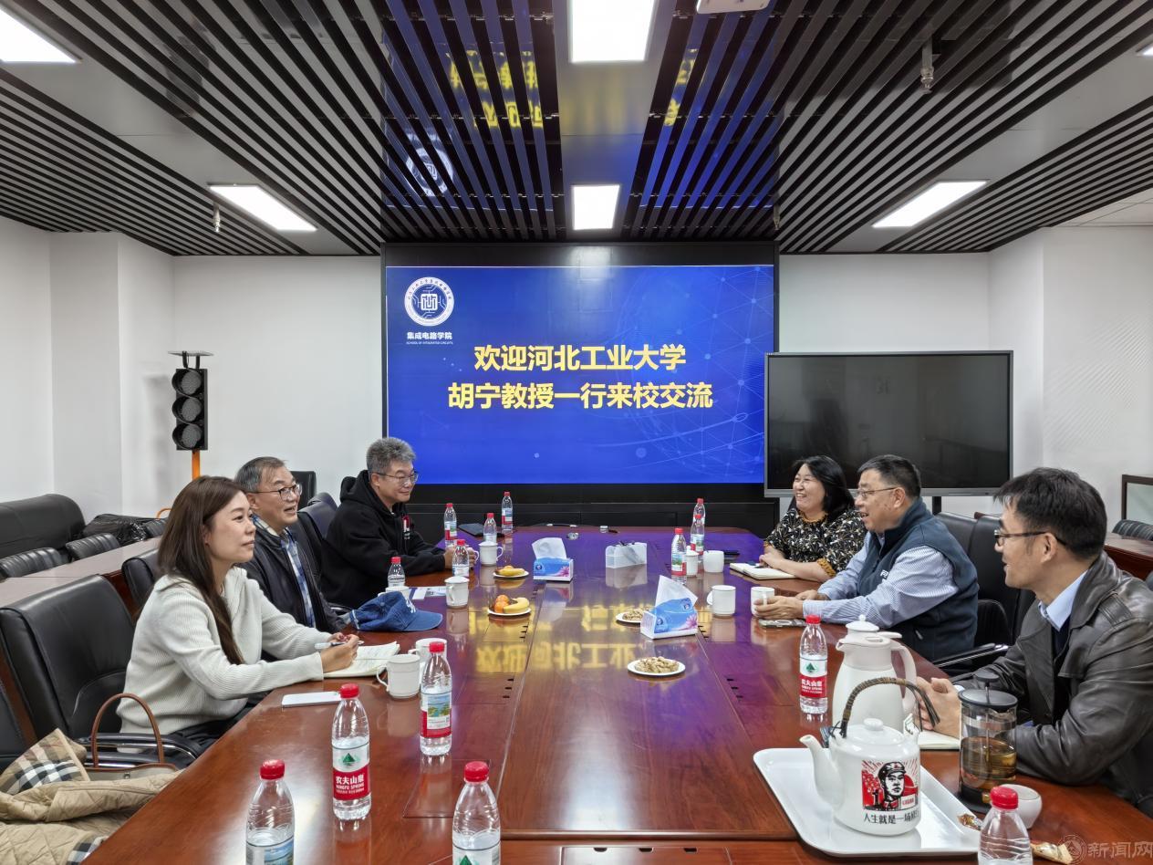 10月19日,国家海外高层次人才、国务院政府特殊津贴专家、河北工业大学副校长胡宁教授一行莅临世界杯集成电路学院进行学术交流,学院院长闫江教授、副院长张静教授及学科骨干教师明安杰教授热情接待。双方以“产学研协同赋能”为核心,围绕交叉学科在芯片行业的科研创新与产业应用展开探讨,开展了一场兼具学术深度与产业前瞻性的沟通交流。