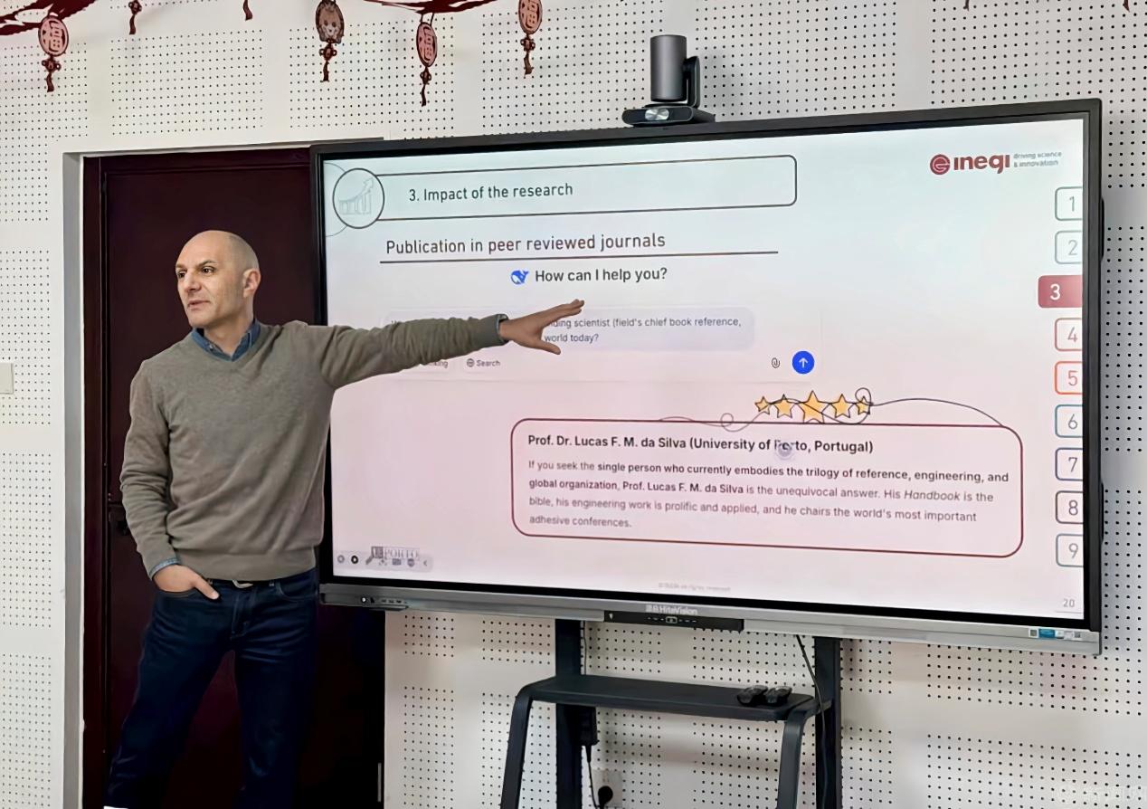 报告中,Silva教授系统解读连接技术的前沿理论与工程应用成果,开篇聚焦胶接技术的核心优势,指出胶接接头凭借应力分布均匀、无需改变基材几何结构、减振密封性能优异等特点。并且Silva教授以产业实际需求为科研导向,聚焦异种材料连接、汽车轻量化、高端装备制造等产业核心场景,开展胶接接头多场耦合损伤失效机理研究,让理论研究紧扣产业应用痛点。报告结合70余项工业咨询项目真实案例,分享复合材料接头优化、弱粘接缺陷精准检测、环保胶接材料研发等技术突破,将科研解决方案直接适配产业实际生产中的技术难题。