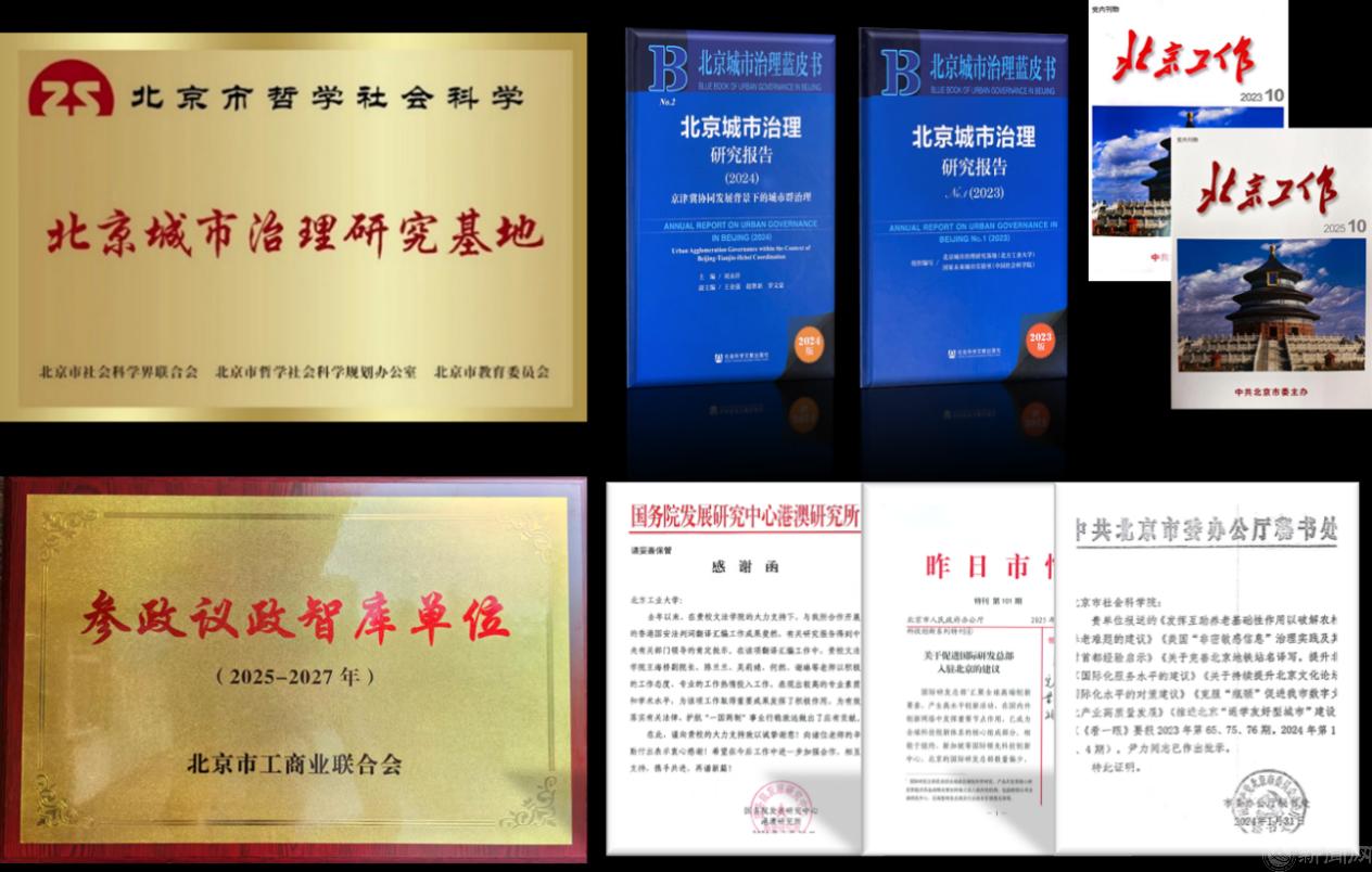 “十四五”期间,学校充分发挥多学科交叉优势,围绕国家和北京市政府重点工作开展决策咨询研究,取得了共计95项智库成果。其中,《关于完善北京地铁站名译写,提升北京国际化服务水平的建议》得到市委书记批示,《关于延庆世园会后续利用问题的对策建议报告》《关于加快养老机器人产业发展应对银发浪潮的建议》《关于促进国际研发总部入驻北京的建议》《京西地区提升防汛综合应对能力和灾后恢复重建水平应重点解决“三大问题”》《落实企业安全生产主体责任以高水平安全保障首都高质量发展》《全市2023年第一季度重点行业领域安全生产风险分析研判及对策建议》等研究报告得到市委市政府领导批示,2篇专家研究成果在北京市委内刊《北京工作》刊发。依托北京城市治理研究基地,学校主动对接市政府和各委办局信息报送渠道,建成北京市工商联参政议政智库基地。