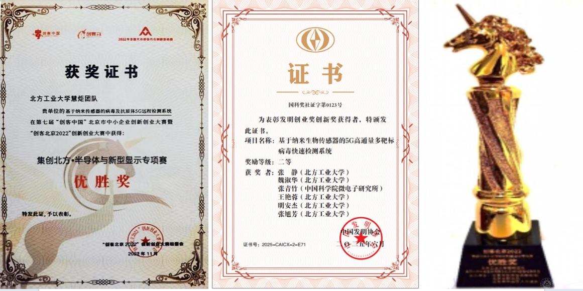 智能传感与微系统方向,聚焦生物技术与信息技术融合前沿,攻克高灵敏纳米线阵列传感器的量产难题,自主研发的“基于纳米场效应晶体管传感器的5G高通量多靶标微生物快速检测仪”获“创客北京2022”创新创业大赛优胜奖及2025年中国发明协会发明创业奖创新二等奖。同时积极探索研发仪器用高性能热释电红外探测器及NDIR气体传感器。