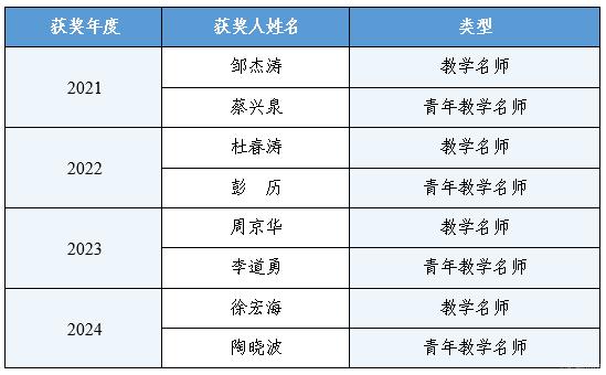 “十四五”期间,获全国高校教师教学创新大赛一等奖1项、二等奖1项、三等奖1项。获评北京市高等学校教学名师奖4人,北京市高等学校青年教学名师奖4人,北京高校优秀本科实验教学指导教师3人,北京高校优秀大学生学科竞赛指导教师2人。在北京高校青年教师教学基本功比赛中,世界杯累计获得理科类一等奖2人、二等奖1人;工科类一等奖2人、三等奖2人;文科类一等奖2人、三等奖1人;各类最佳奖项21人次;最佳指导教师奖12人次;学校3次获评优秀组织奖。