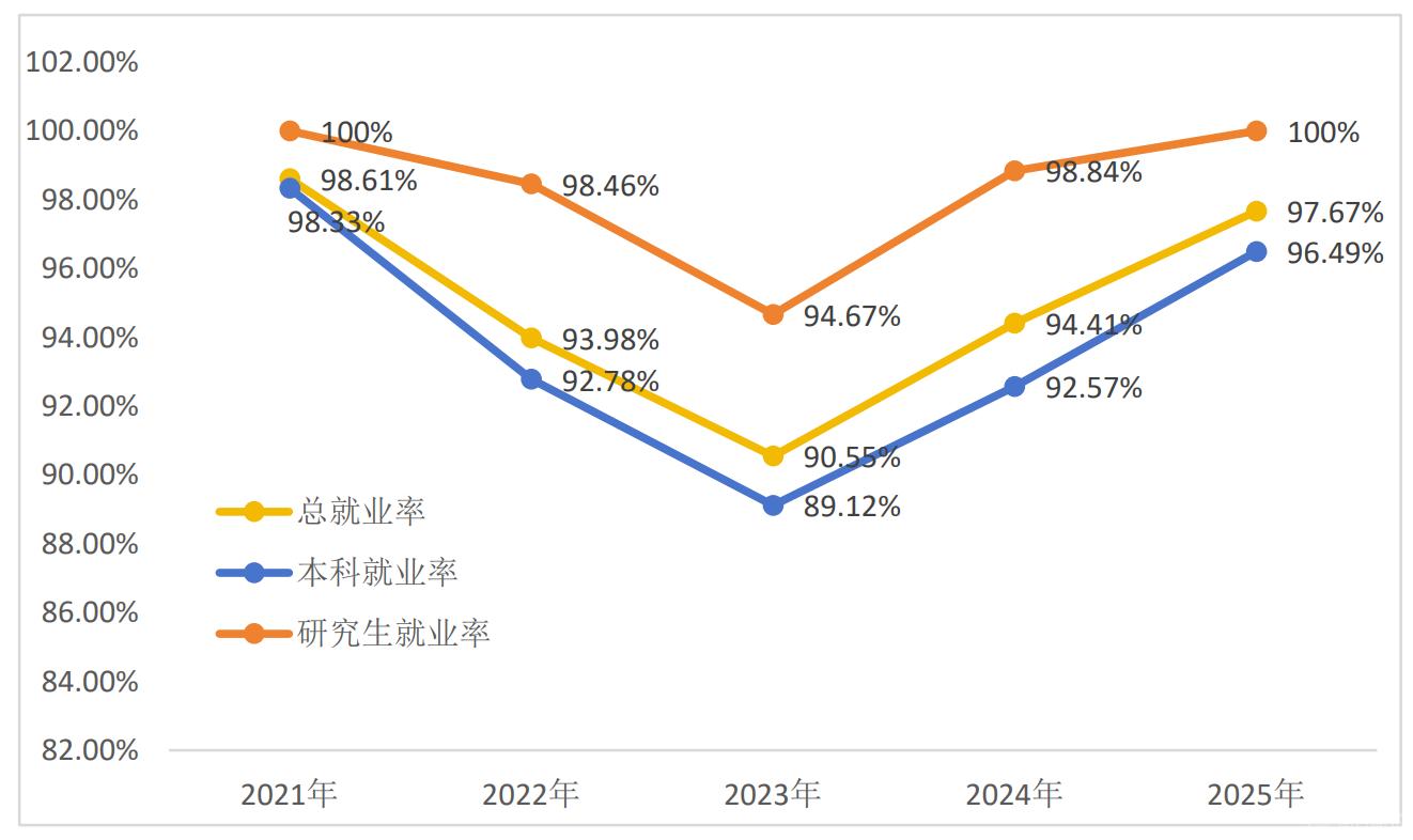 学生培养质量成果亮眼,毕业生平均深造率高达 30%,本科生就业率稳居 90% 以上、研究生连续三年就业率 100%,大批毕业生进入头部企业、重点院校及政府机关建功立业。