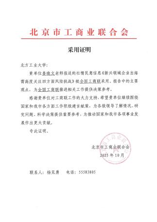 2025年,学院正式成为北京市工商联参政议政单位,科研服务社会能力迈上新台阶。在服务企业高端管理人才培养方面,开展专项培训班多次;为企业提供咨询服务,成效显著。