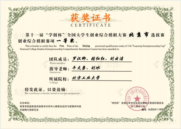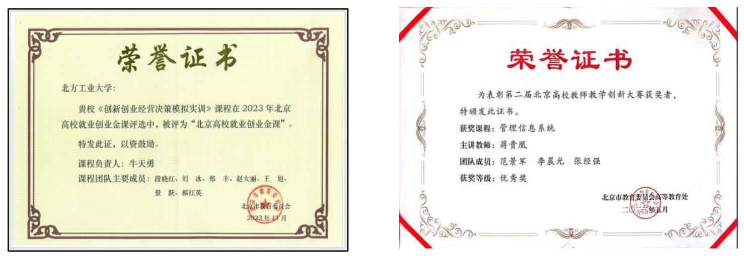 学科竞赛捷报频传,获第九届中国 “互联网 +” 大学生创新创业大赛北京赛区一等奖、2023 中国国际大学生创新大赛银奖等百余项高水平奖励。