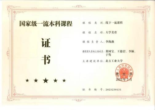 国家级“金课”实现突破。《大学美育》获评国家级一流本科课程;2门课程被评为北京市优质本科课程。