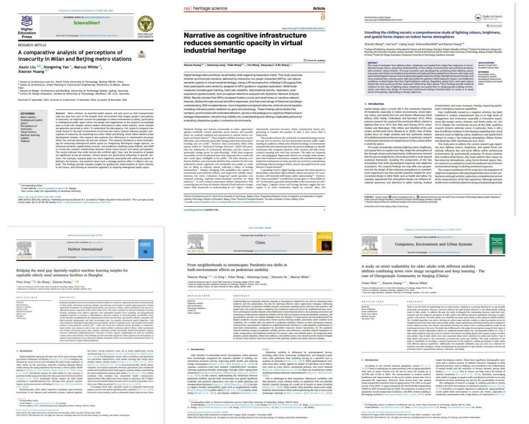 学术论文方面,他以第一作者或通讯作者身份发表高水平期刊论文30余篇,其中SCI/SSCI收录论文25篇,中科院一区TOP期刊论文5篇,成果发表于《Computers, Environment and Urban Systems》《Cities》《Frontiers of Architectural Research》《Architectural Science Review》等国际知名学术期刊;EI收录会议论文12篇。