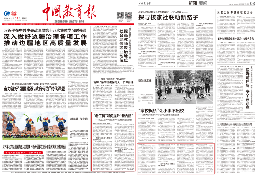 【官微】《中国教育报》头版报道